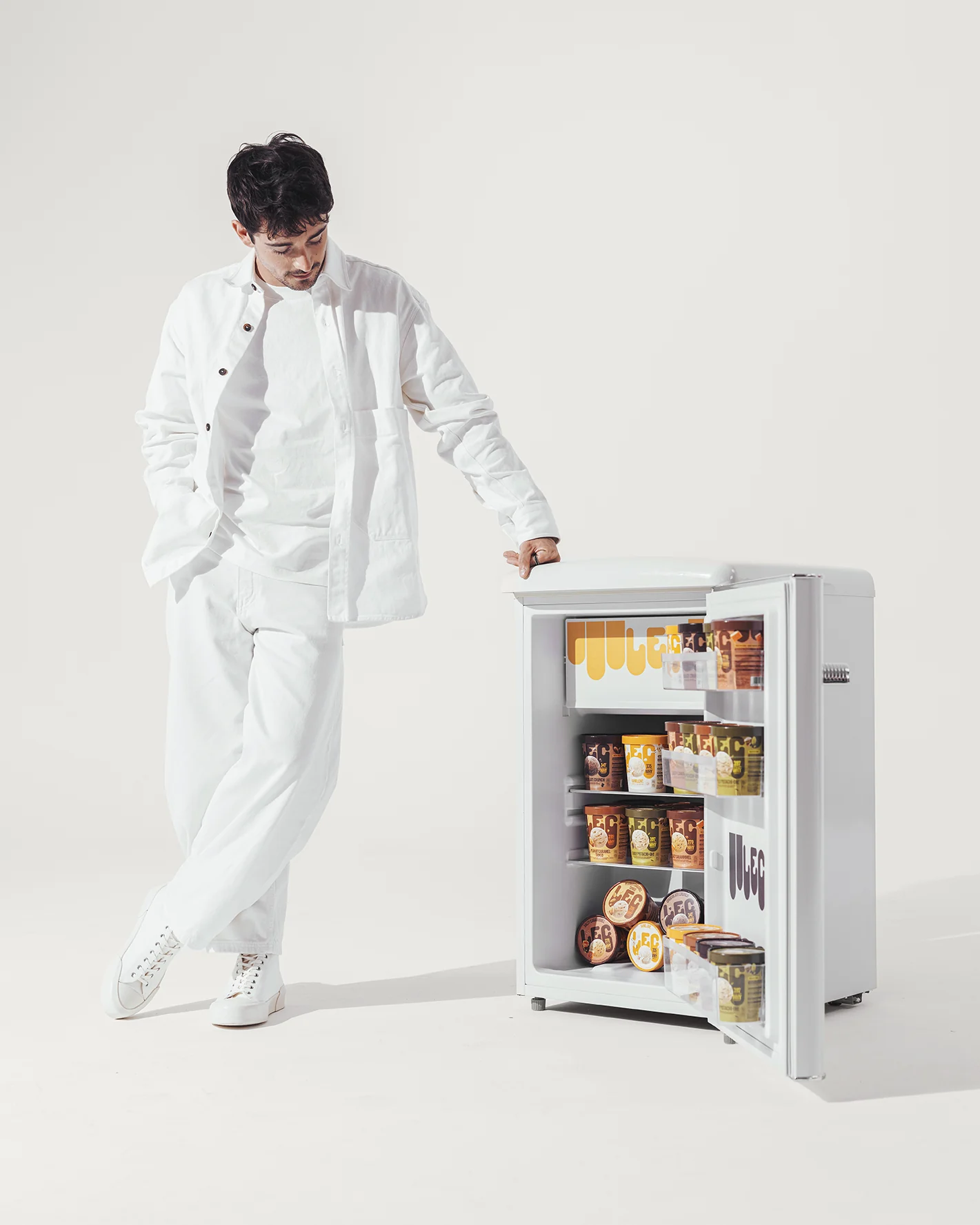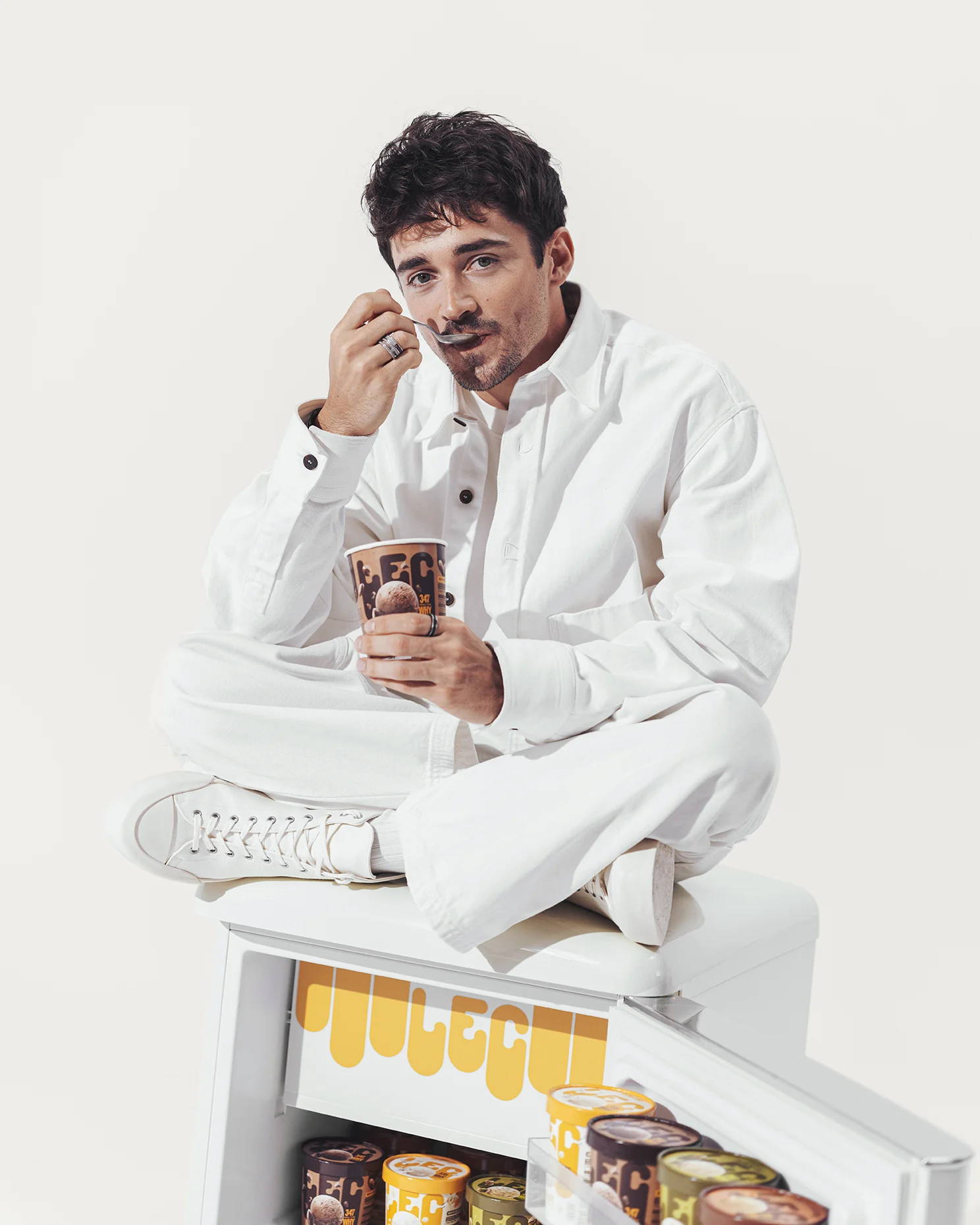 LEC isn’t just another ice cream brand: it’s born from Charles’ personal passion for gelato, offering a low-calorie, protein-rich option that doesn’t compromise on taste. Our task? Create an immersive set that could reflect the creative vision of Leclerc’s agency and photographer, bringing the LEC story to life through compelling visuals.